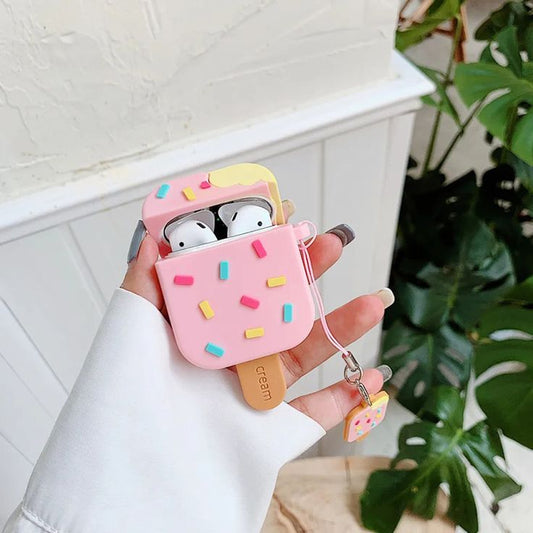 Airpods Case Soft Silicone Cover With Hook Clip For Airpods (Ice Cream With Stick)