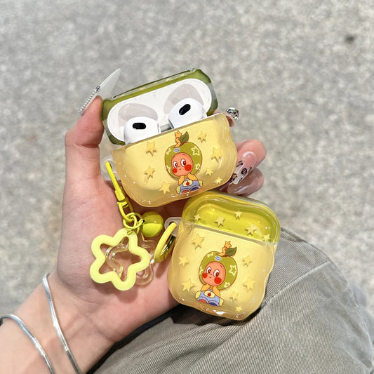 Glossy Protective Yellow Cartoon Star AirPods Case With Keychain