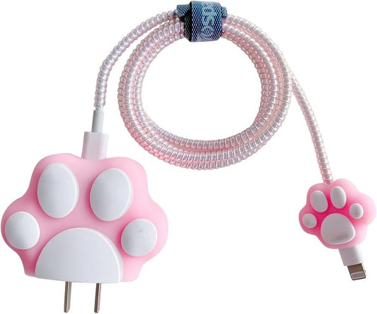 Cute Cartoon Series Fast Charger Protector for iPhone (Pink Cat Paw)