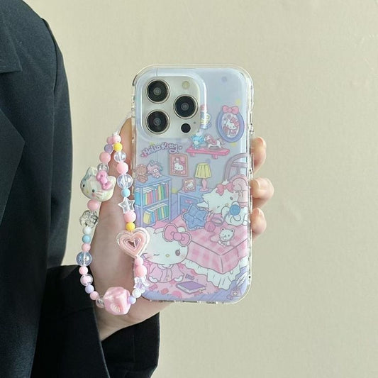 Pastel Bedroom-Themed Cute Kawaii Silicone Phone Case with beaded charm