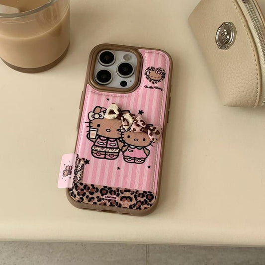 Pink Striped kitty-Style Phone Case With Leopard Bow Accents
