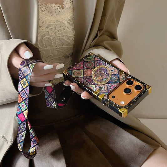 Retro Mosaic Phone Case With Strap & Ring Holder