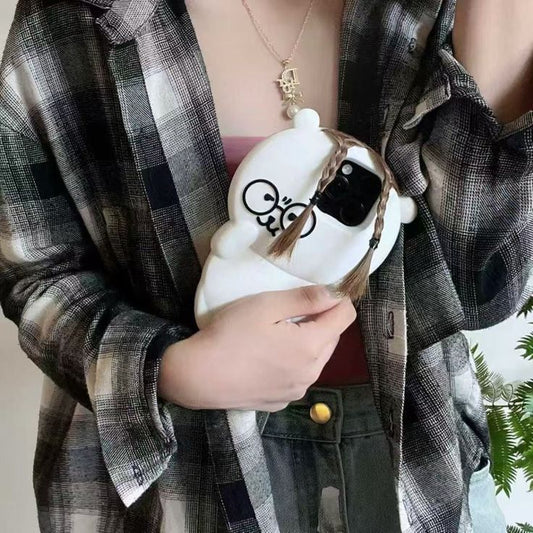 Braided-Hair Cute Cartoon Bear Silicone Phone case