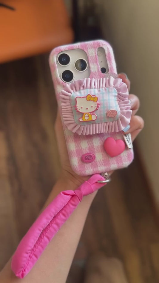 Pink Kitty Heart Phone Case With Cute Fabric Charm
