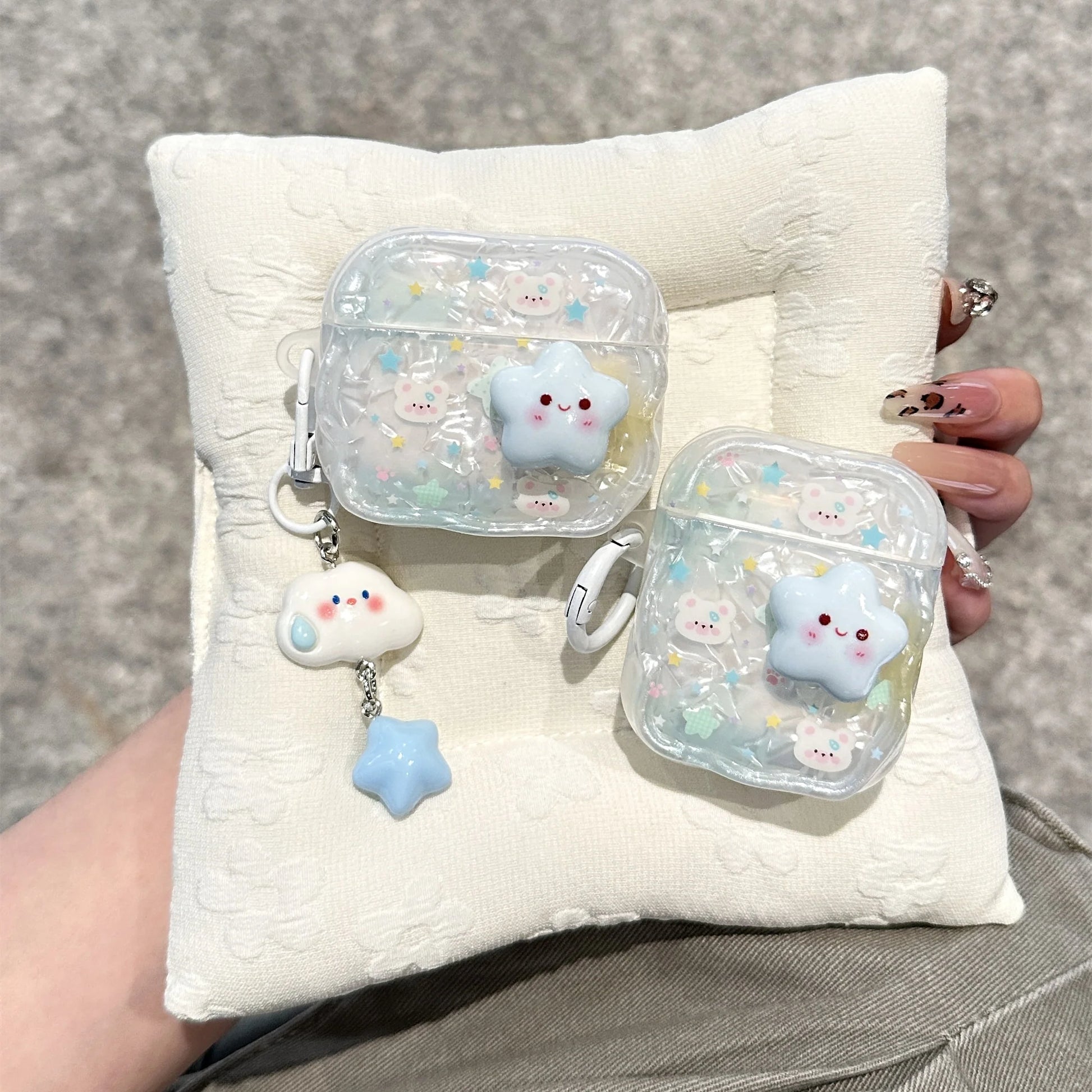 Cloud & Bunny Glitter Protective AirPods Case With 3D Star Charm