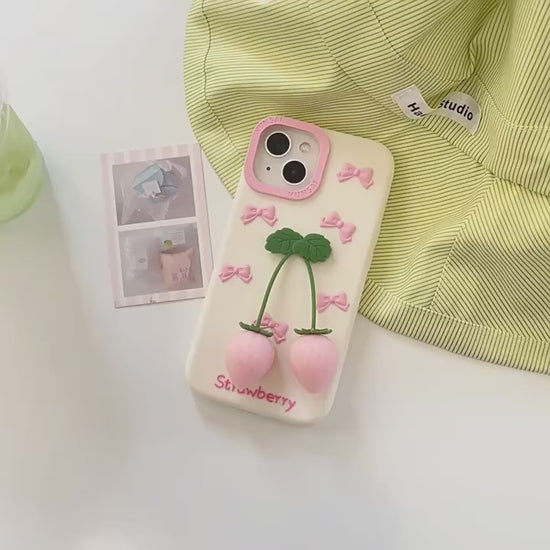 Designed with adorable 3D strawberry pops and soft pink bows, this case brings a playful, peachy-fresh vibe to your everyday look.